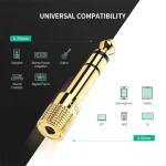 El adaptador de audio de 3,5 mm hembra a 6,3 mm macho de 1/4 a 1/8 ”es una forma conveniente y económica de conectar teléfonos inteligentes, tabletas, iPod o auriculares con enchufes estándar de 3,5 mm de 1/8 pulgadas a dispositivos de audio Con un conector estéreo de 6,35 mm de 1/4 de pulgada
