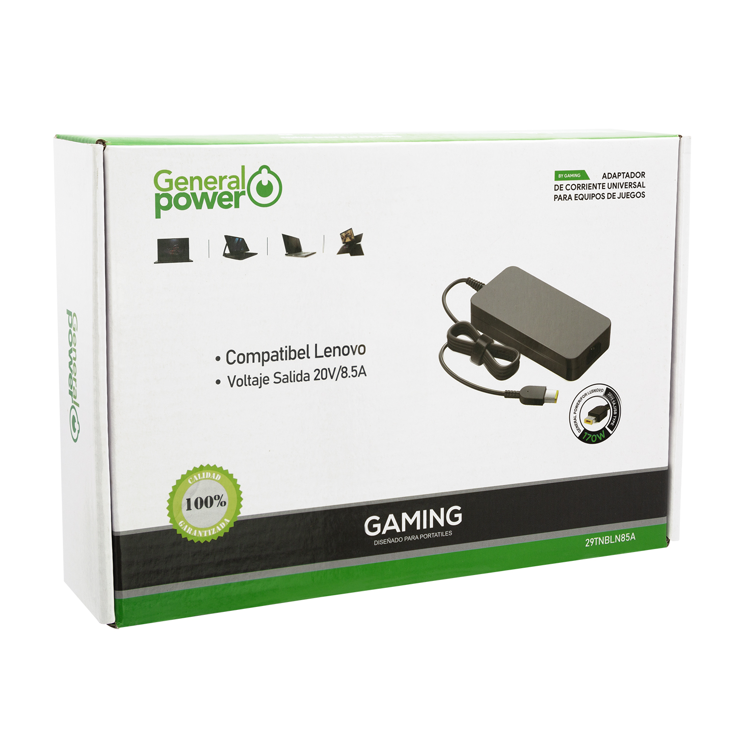 Este cargador es un producto alternativo, no original de Lenovo, pero compatible con modelos gamer que utilizan un conector específico tipo USB (rectangular, no USB-C).