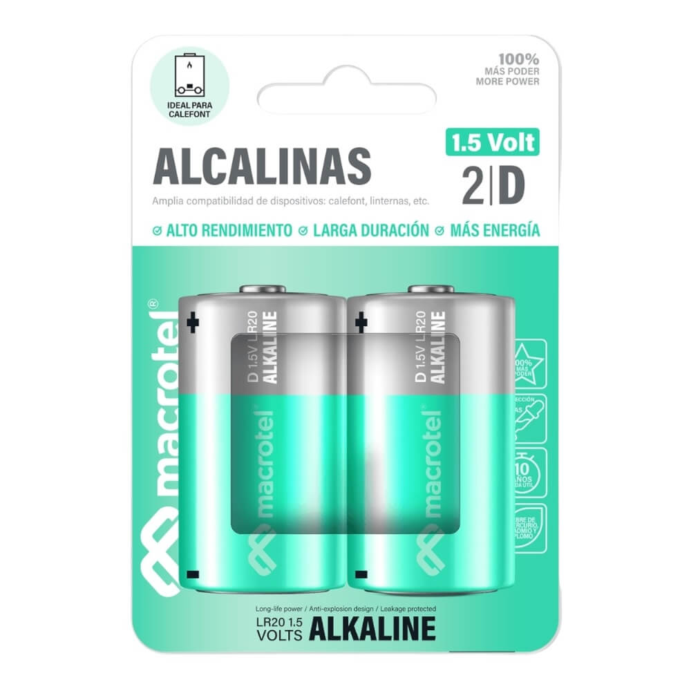 Pack 2 Pilas Alcalinas D Macrotel MW-ALK2D