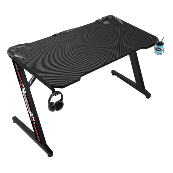 Escritorio Gamer con Soporte para Audífonos y Vaso Fiddler Z – Tablero de sustrato TRIMETILAMINA PH 18MM. – Proceso de lacado de horneado de acero para patas. – Equipado con inserto de piezas de chapa metálica y soporte de fila, soporte para auriculares y soporte para taza de té. – Medidas: ALTO 72 X LARGO 120 X ANCHO 10CM