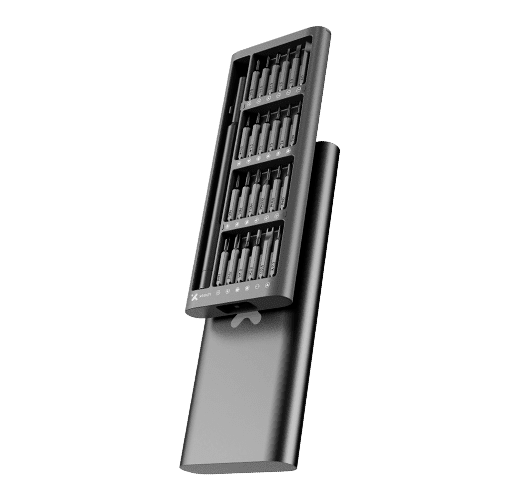- Juego de 24 puntas intercambiables de diferentes modelos para tus necesidades diarias, incluidas Philips, Flathead, Torx, Pentalobe, Triangle, Hex, Tri-Wing, Spanner y más.