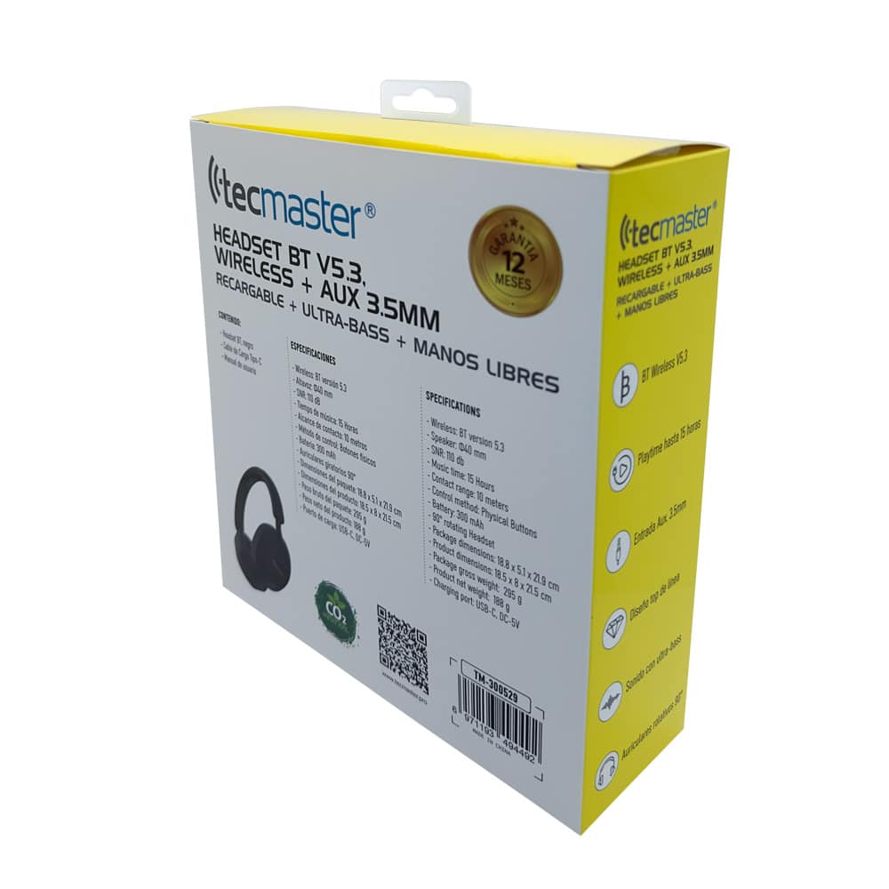 Audífonos Tecmaster Bluetooth v5.3 Wireless + Aux 3.5mm TM-300529